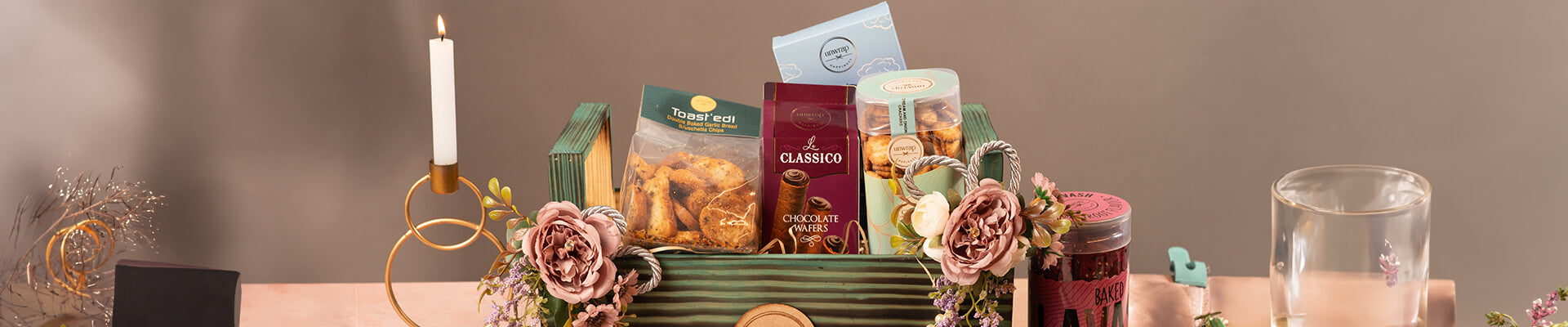 Brittle - 100gmLavash - 100gmGarlic Bread - 150gmChocosins - 9 pcCookie Box - 75gm