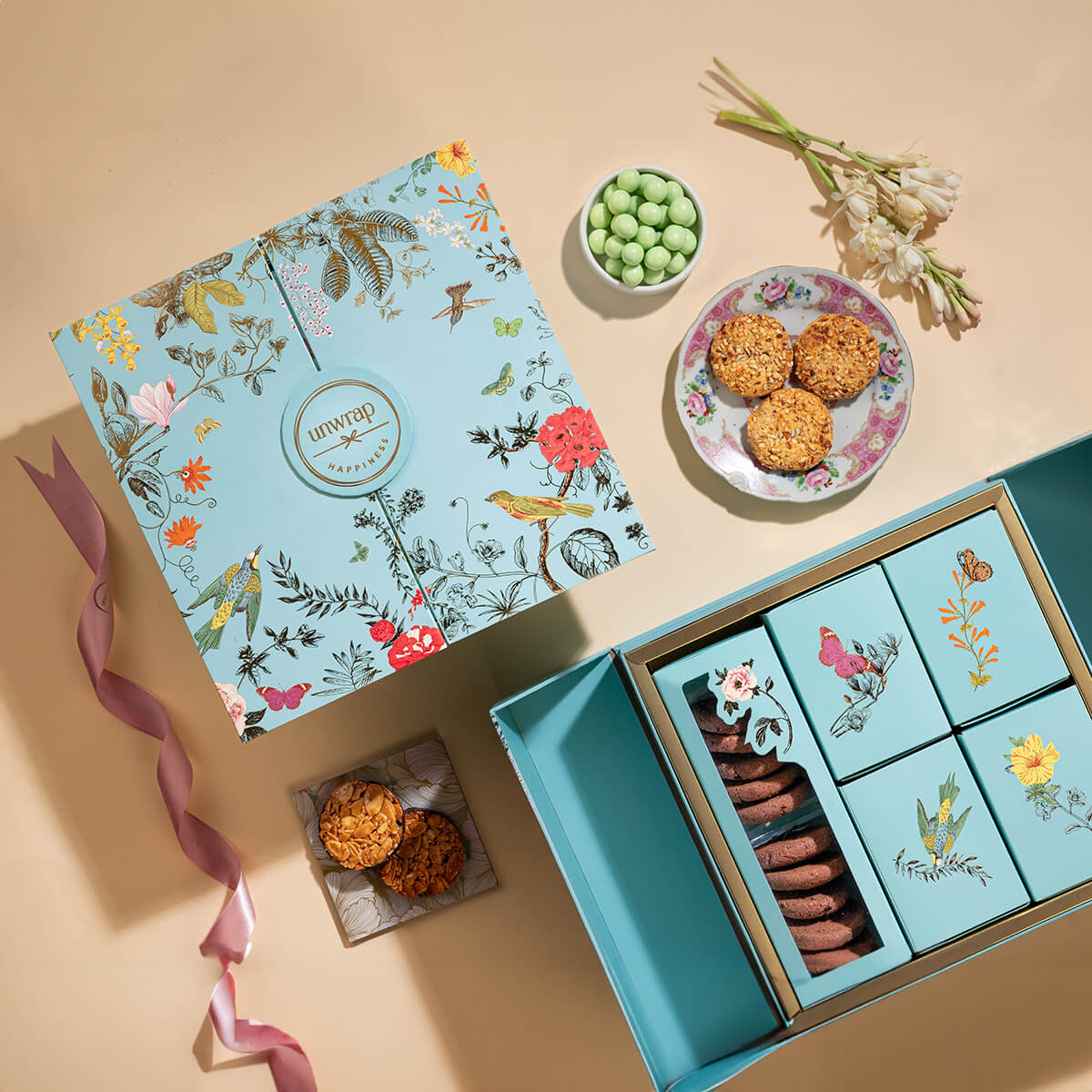 At Unwrap Happiness, we believe in crafting delightful treats that are rooted in Indian heritage while being loved worldwide. Our skilled artisans blend tradition with innovation to create confections that transcend mere ingredients. We ensure that every bite is an ode to excellence by sourcing the finest cocoa, purest teas, and crunchiest nuts. Our hampers are expressions of care, beautifully packaged for any occasion, from celebrations to corporate gestures or personal surprises.