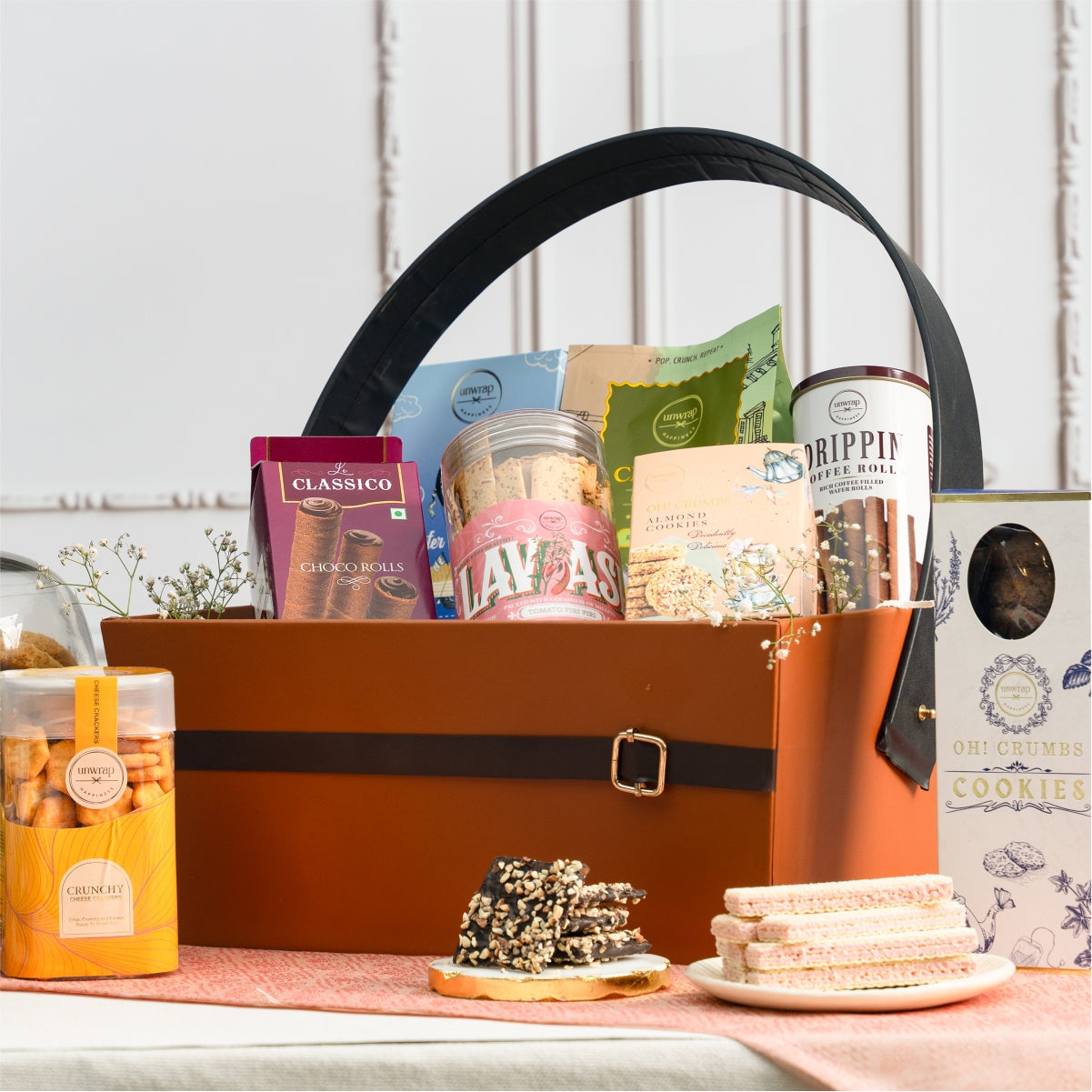 At Unwrap Happiness, we believe in crafting delightful treats that are rooted in Indian heritage while being loved worldwide. Our skilled artisans blend tradition with innovation to create confections that transcend mere ingredients. We ensure that every bite is an ode to excellence by sourcing the finest cocoa, purest teas, and crunchiest nuts. Our hampers are expressions of care, beautifully packaged for any occasion, from celebrations to corporate gestures or personal surprises.