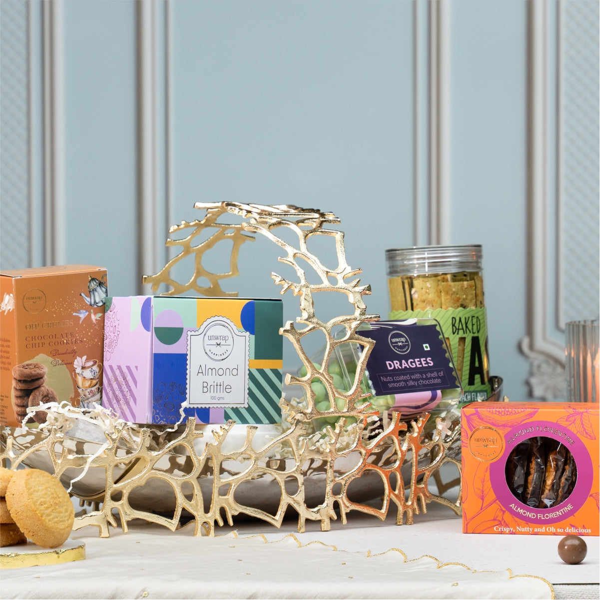 At Unwrap Happiness, we believe in crafting delightful treats that are rooted in Indian heritage while being loved worldwide. Our skilled artisans blend tradition with innovation to create confections that transcend mere ingredients. We ensure that every bite is an ode to excellence by sourcing the finest cocoa, purest teas, and crunchiest nuts. Our hampers are expressions of care, beautifully packaged for any occasion, from celebrations to corporate gestures or personal surprises.