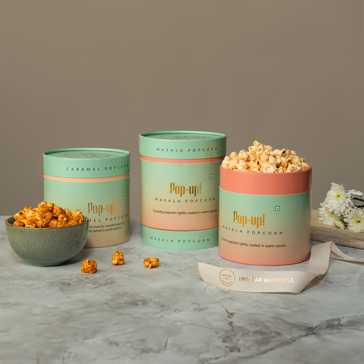 Our masala pop-up is made with a unique blend of traditional and natural Indian spices that you won’t find in regular popcorn. With the classic crunch of popcorn and aromatic spices, our masala popcorn is unmatched.